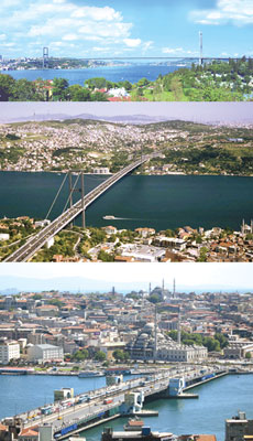 Boğaziçi üzerinde köprü yapılması projesi de ilk kez Sultan 2. Abdülhamid döneminde gündeme geldi. Anadoluhisarı ile Rumelihisarı arasında bir köprü inşa edilmesi için görüşmeler yapıldı. Bu ilk boğaz köprüsü üzerinde bir raylı sistem de planlandı. Ancak Abdülhamid’in tahttan indirilmesiyle proje de rafa kaldırıldı. Bundan yaklaşık 70 yıl sonra Beylerbeyi ile Ortaköy arasında yapımına başlanan Boğaziçi Köprüsü, Alman ‘’Hochtief AG’’ ile İngiliz ‘’Cleveland Bridge and Engineering Company’’ şirketleri tarafından yapıldı. Bu köprü, 29 Ekim 1973’te açıldı. Yaklaşık 22 milyon dolara mal edilen Boğaziçi Köprüsü’nün yumuşak ve yüksek dirençli çelikten yapılmış olan kuleleri 165 metre yüksekliğinde, üçer gidiş ve gelişli 6 şeritlik köprünün orta noktası ile deniz arasındaki mesafe 64 metre, iki kule arasındaki uzunluk ise 1074 metre iken, kulelerin içerisinde yolcu ve servis asansörlerine de yer verildi.