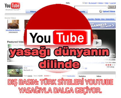 The Financial Times gazetesi, Türkiye'deki internet sitelerinin, kendi sitelerini kapatılmış gibi göstererek mahkemelerin Youtube'a koyduğu yasakla dalga geçtiğini yazdı. Gazete, "sansürü kınama" hareketi ile 450 kadar sitenin, kendilerini kapatılmış gibi gösteren bir mesajı yayınladıklarını kaydetti.