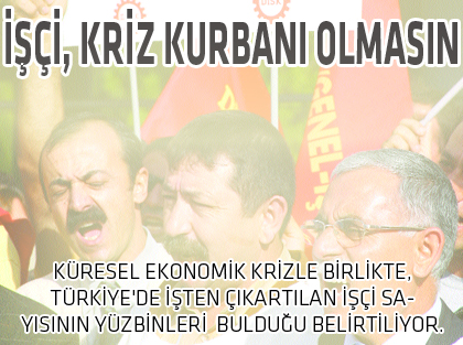 İstanbul, Bursa, Denizli, Gaziantep, Kayseri ve Konya gibi sanayinin geliştiği illerde, küresel ekonomik krizin etkisiyle işten çıkarılan işçi sayısının 100 binin üzerinde olduğu bildirildi. Türk-İş Genel Malî Sekreteri Ergün Atalay, şöyle konuştu: “Bu daha işin başı. Yani, bu gemi böyle gitmez, gitmemeli. Bunun bedelini işverenler de öder, ülkeyi yönetenler de öder, biz zaten çalışanlar olarak bedelini ödemeye devam ediyoruz. Krizden çıkmanın yolu işçi çıkarma değil, işçi çalıştırmaktır.”