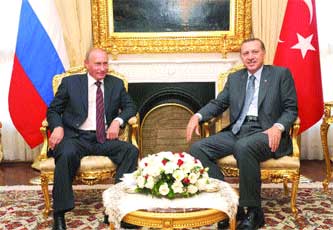 Rusya Başbakanı Vladimir Putin, dün günübirlik çalışma ziyareti için Ankara’ya geldi. İlk önce Başbakan Recep Tayyip Erdoğan ile Başbakanlık Resmi Konutu’nda baş başa görüşen Putin, daha sonra Erdoğan tarafından onuruna verilen öğle yemeğine katıldı. İki Başbakan, Başbakanlık Yeni Bina’da protokol imza töreninin ardından basın toplantısı düzenledi. Putin’in Ankara temaslarındaki en önemli gündem maddesini enerji konularının oluşturdu. Görüşmelerde Mavi Akım-2 doğal gaz boru hattının İsrail’e uzatılması, Samsun-Ceyhan petrol boru hattı, Güney Akım doğal gaz boru hattı, nükleer enerji santrali ve Tuz Gölü altında doğal gaz deposu inşasının Rus şirketi tarafından yapılması, Türk tırlarına yönelik Rus gümrüklerinde uygulanan sıkı denetim gibi konularının konuşulduğu belirtildi. Ziyaret çerçevesinde nükleer enerji dahil çeşitli alanlarda bazı bazı anlaşmalar imzalandı. Enerji işbirliği kapsamında birçok önemli konunun ele alındığı ziyarette, Güney Akım Projesi kapsamında Türkiye’nin münhasır alanında sismik araştırma yapılması için bir protokolün de imzalandığı ifade edildi. İmza anlaşmasına İtalya Başbakanı Silvio Berlusconi de katıldı. Ankara / aa |