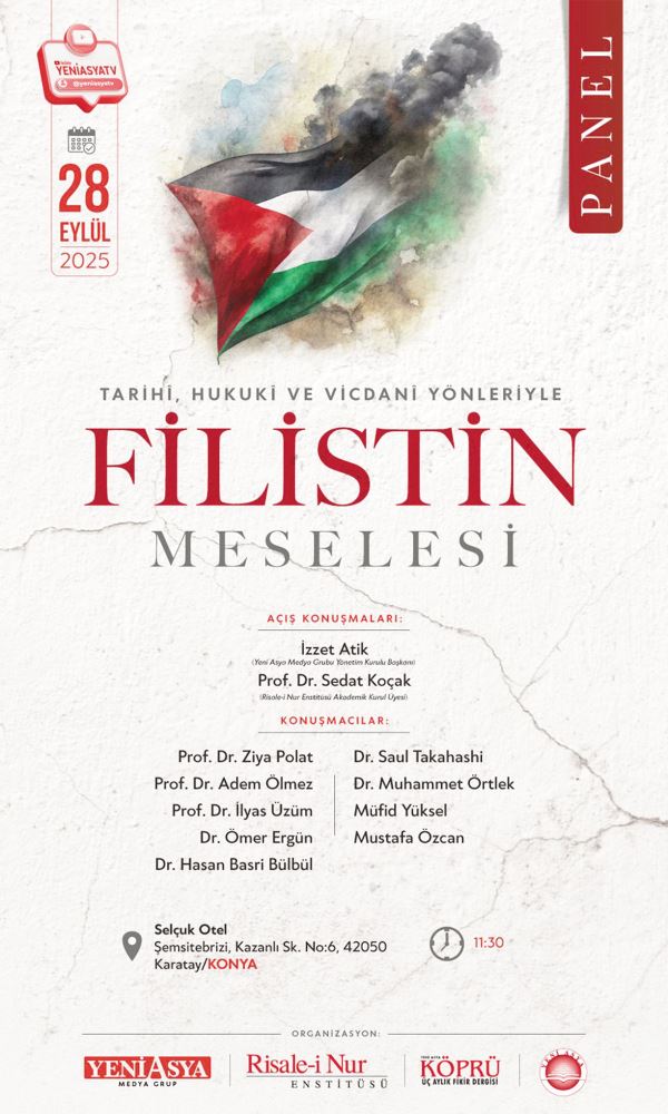 Hafta sonu Mevlâna Hazretlerinin mihmandarlığında, Konya’da, fiilî bir dua niyetiyle “Filistin Meselesi” konuşulurken Nurların yalnız ehl-i imanın değil tüm insanlığın imdadına koşturulduğu beldede, Isparta’da Üstadımız için mevlid okunacak. Isparta’dan yükselen dualar, Konya’dan duyurulacak masa çalışması sonuçlarının kabulüne vesile olacak inşallah.