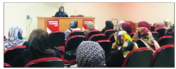 İslÂm’ın kadına verdiği değeri Cahiliye Dönemine bakarak anlayabileceğimizi ifade eden Hülya Çelik, “İslâmın kadına verdiği değer” konulu seminerde, “Cahiliye dönemi denilince aklımıza kızların diri diri toprağa gömülmesi geliyor. İslâmiyet geldikten sonra, kız çocukları üzerine şefkat ve merhamet kanatlarını germiştir. Kızların bakım ve terbiyesi için türlü zahmet ve fedakârlıklara katlanan mü’min kadın ve erkeklerin, büyük fazilet ve ecir sahibi olacaklarını beyan etmiştir. Kadınlık ancak İslâm dini ile lâyık olduğu mevki ve değeri kazanmıştır” diye konuştu.