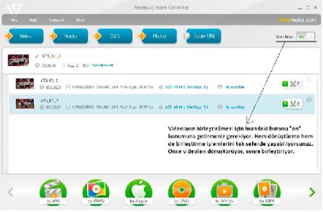 Videoların birleştirilmesi ve farklı türdeki formatları dönüştürme işleminde kullanacağınız basit arayüzlü ve kullanışlı bir program: Freemake Video Converter.