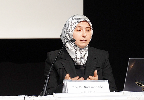 Panelin ikinci oturumunda söz alan Doç. Dr. Nurcan Deniz, ailede yaşanan problemlerin çözümünde Kur’ân ve Sünnet’in rehberliğine dönülmesi gerektiğini belirtti. “Nasıl ki hastalanırsak tedavi oluruz, ama öncelikli olan hastalanmamaktır. Dolayısıyla başvuracağımız temel kaynaklar da Kur’ân-ı Kerîm ve Sünnet olacaktır” diyen Deniz, aile içindeki ilişkilerde rahmet ve merhametin esas olması gerektiğini vurguladı. Konuşmasında Allah’ın Rahman, Rahîm ve Vedûd isimleri üzerinden bir aile modeli çizen Deniz, “Rahman ismi dünyadaki herkesi, Rahîm ismi ise mü’minleri kapsıyor. O hâlde biz de ailemizde sadece istediğimiz davranışları sergileyenlere değil, hepsine rahmet göstermeliyiz” dedi. Ailenin, Allah’ın güzel isimlerine ayna olabilecek bir mekân olması gerektiğini belirterek, “Birey olarak ayna olabiliyorsak, aile olarak da olalım” çağrısında bulundu.