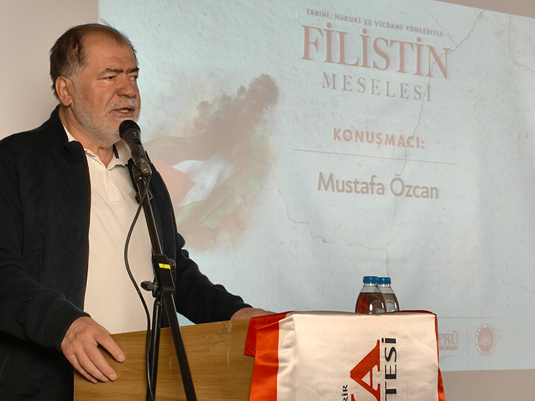 Özcan, bugün yaşananların Hendek Savaşı’na benzer küresel bir kuşatma olduğunu vurgulayarak, “Filistin ve İslâm dünyası küresel bir hendek ile çevrili. Ama bu hendek açıldığında insanlık İslâmiyet ile perdesiz bir şekilde buluşacak” dedi. İslâm’ın çağları aşan mesajına dikkat çeken Özcan, zulme karşı duran her vicdan sahibinin bu hakikati kabul ettiğini belirterek, “Rachel Corrie isimli bir kadın ‘Zulüm bendense ben zulümden yana değilim’ diyordu. Bu evrensel bir ifade, İslâm’ın da kabul ettiği bir hakikattir. İsrail, İslâmiyet’in berrak tebliğinin önündeki en büyük engellerden biridir. İslâmiyet’e her türlü kötülük vasfını yakıştırıyor, terör gibi yaftalarla onu karalamaya çalışıyor. Ondan dolayı bu tarihî hendeği açtığımızda yani kuşatmayı açtığımızda insanlık İslâmiyet ile perdesiz bir şekilde buluşacaktır” ifadelerini kullandı.