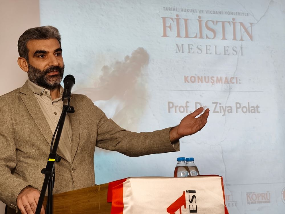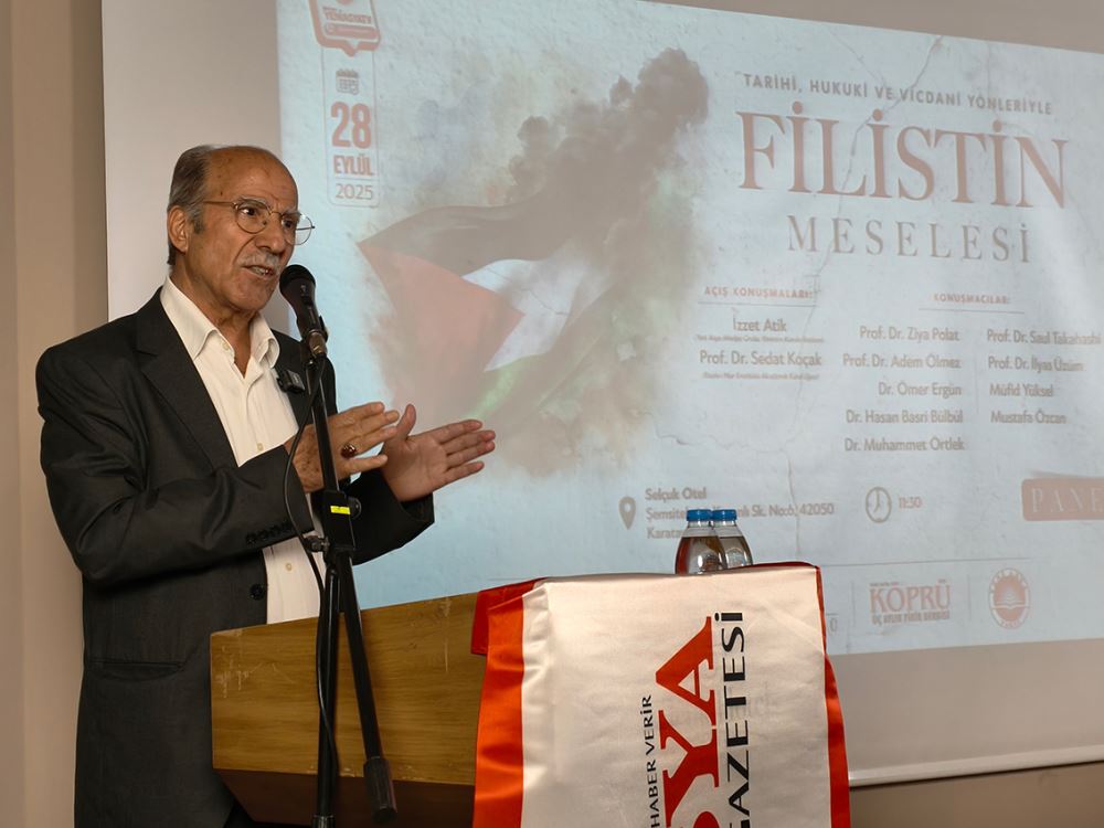 Prof. Dr. İlyas Üzüm, Gazze’de yaşanan trajedinin insanlığın vicdanını harekete geçiren bir imtihan olduğuna dikkat çekti. “Bir taraftan bakınca yaklaşık bir saatte 18 Gazzeli öldürülüyor. Bir saatte bir çocuk katlediliyor. Toplam sayı 65.000. Katledilen çocuk sayısı 20.000 dolayında. İnsanlar haberleri izlerken yürekleri parçalanıyor. Böyle bir olay ne Arapları sadece, ne Müslümanları… Değil; bütün insanları, bütün insanların insanlıklarını, insaniyetlerini, vicdanlarını ayağa kaldırdı” dedi. İsrail’in “haydut devlet” olduğunu vurgulayan Üzüm, Netanyahu’nun askerlerini motive etmek için Tevrat’tan “Amaleklileri öldüreceksin; öldür! Kadınlarını, çocuklarını, develerini, öküzlerini, eşeklerini öldür…” ayetini okuduğunu hatırlatarak, “Bu muharref ayet, insan vicdanı tarafından reddediliyor” ifadelerini kullandı.