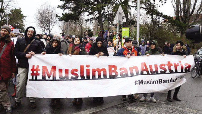 Protestocular, çeşitli ulusların bayraklarının yanı sıra “Sığınmacılar hoş geldi”, “Korku yerine özgürlük”, “Daha insanca sığınmacı yasası” ve “Müslüman yasağına hayır” yazılı dövizlerle, parlamento binasına yürüdü. Müslüman sivil toplum ağı adına konuşan Esim Karakuru, ırkçılık ve ayrımcılık karşıtı açıklamalara basının yer vermediğine işaret ederek, “Müslüman kadınlar üzerinden politika yapılıyor. Müslüman kadınlar ayrımcılığın birçok şekliyle karşı karşıya kalıyor. Bu ayrımcılık, toplumun her kademesinde hissediliyor. Bu nedenle bugün burada sesimizi yükseltmek ve mücadele vereceğimizi söylemek için toplandık.” dedi. Müslüman olsun olmasın, hiç kimsenin bir kadının kılık kıyafetine karışma hakkının olmadığını belirten Karakuru, Avusturya’ya farklı ülkelerden daha insanca bir yaşam sürmek için gelen sığınmacılar üzerinden siyaset yapıldığını ve bu insanların tekrar geldikleri tehlikeli savaş bölgelerine geri gönderilmek istenildiğini ifade etti.