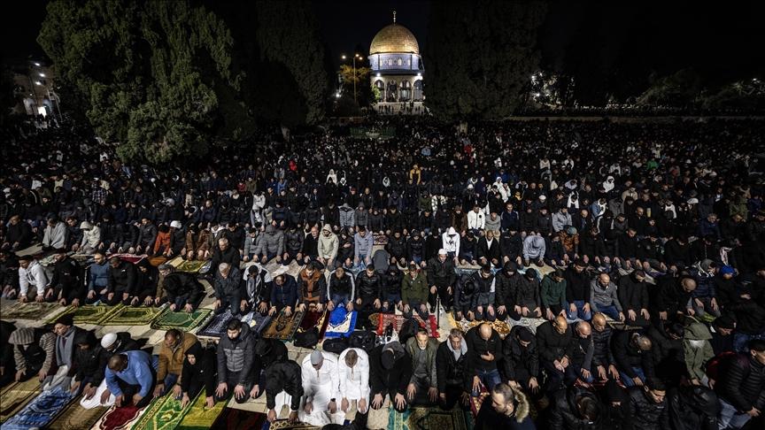 Kudüs İslâmî Vakıflar İdaresinden yapılan yazılı açıklamaya göre, İsrail polisinin Eski Şehir ve Mescid-i Aksa’ya girişlerine getirdiği kısıtlamalara rağmen yaklaşık 100 bin Filistinlinin Mescid-i Aksa’da yatsı ve teravih namazını kıldığı aktarıldı.