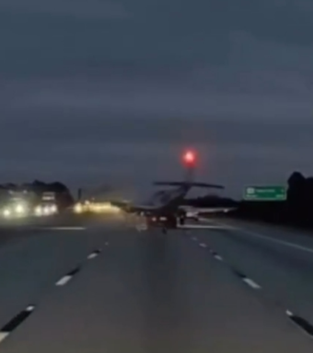 Sosyal medyada otoyola acil iniş yapan uçağın araca çarptığı görüntüler de paylaşıldı.