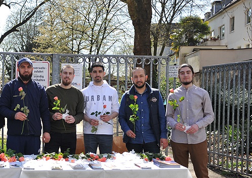 Büyük kentlerde şehir merkezlerine birden fazla kurulan stantlardaki gönüllüler yoldan geçenlere gülün yanı sıra, çikolata, hadislerin Almanca tercümeleri ve İslam dinini tanıtan broşürler verdi.