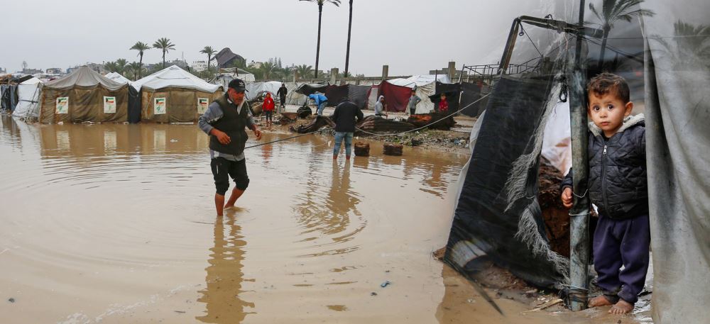 Gazze’de soğuk havalarla birlikte süren şiddetli yağmurun Cuma akşamına kadar devam etmesi beklenirken, yerinden edilen binlerce Filistinlinin çadırları kullanılamaz hale geldi.