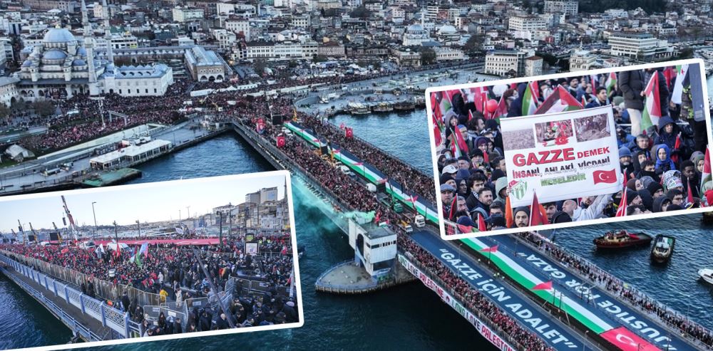 Türkiye Gençlik Vakfı öncülüğünde, İnsanlık İttifakı ve Millî İrade Platformu çatısı altında “Sinmiyoruz, susmuyoruz, Filistin’i unutmuyoruz” sloganıyla düzenlenen eylem için Ayasofya-i Kebir Cami-i Şerifi, Sultanahmet Camisi ve Eminönü’ndeki Yeni Cami ile Fatih ve Süleymaniye camilerinin önünde toplanan insanlar, sloganlar ve tekbirler eşliğinde Galata Köprüsü’nde buluştu.