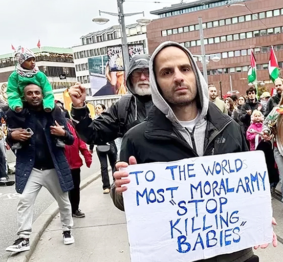 Çok sayıda sivil toplum kuruluşunun çağrısıyla Odenplan Meydanı’nda toplanan kişiler, İsrail ordusunun Küresel Sumud Filosu’na yönelik saldırılarını kınayarak, İsveç hükümetinin İsrail’in tutukladığı İsveçli aktivistler için ses çıkarmamasını ikiyüzlülük olarak niteledi. “Gazze’de çocuklar öldürülüyor”, “Okullar, hastaneler bombalanıyor” ve “Gıda kıtlığına son verilsin” yazılı pankartlar taşıyan eylemciler, “Filistin’e özgürlük” sloganları attı. Eylemciler, İsveç Dışişleri Bakanlığı binasının önüne kadar yürüdü.