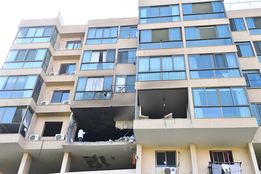 Lübnan'ın başkenti Beyrut'un kuzeyinde bir binaya şarapnel isabet etti