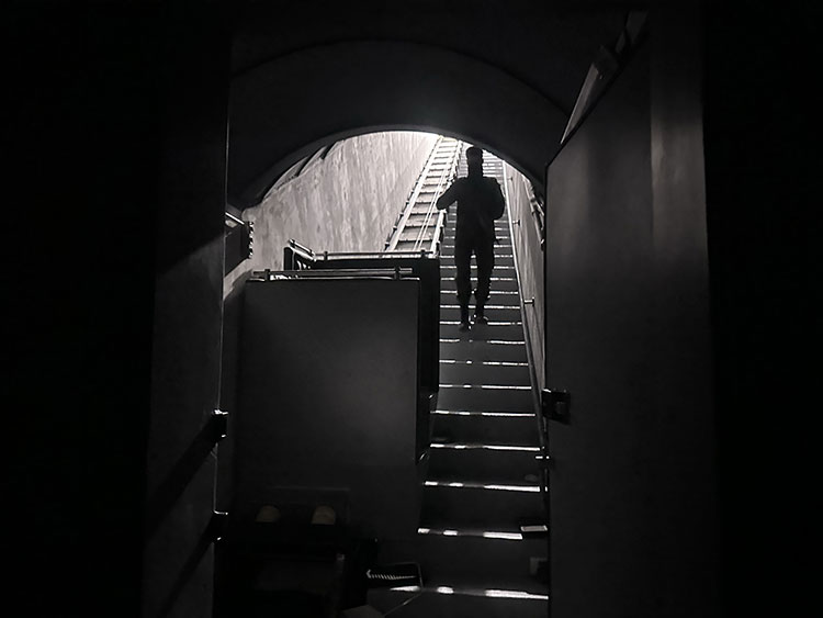 Kapıdan aşağıya açılan merdivenlerin 22 basamağını indikten sonra ara bölüme varılıyor. Burada dinlenme amaçlı olduğu anlaşılan bir tünel görülüyor. 130 basamak daha inildiğinde ise tünel ağlarına ulaşılıyor.