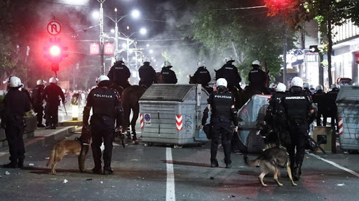Belgrad'daki ulusal meclis binası önünde toplanan binlerce gösterici, polisin güvenlik kordonunu aşarak binaya girmek isterken, emniyet güçleri göz yaşartıcı gazla göstericilere müdahale etti.