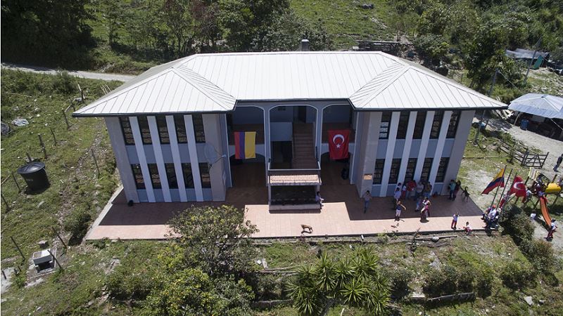 Hükümet ve FARC temsilcilerinin birkaç yıl önce ortak çalışma ile mayın temizliği yaptıkları bu dağlık bölgede "Türk motifleri" ile inşa edilen okul, bir kültür ve sosyal paylaşım alanı olarak da kullanılıyor.