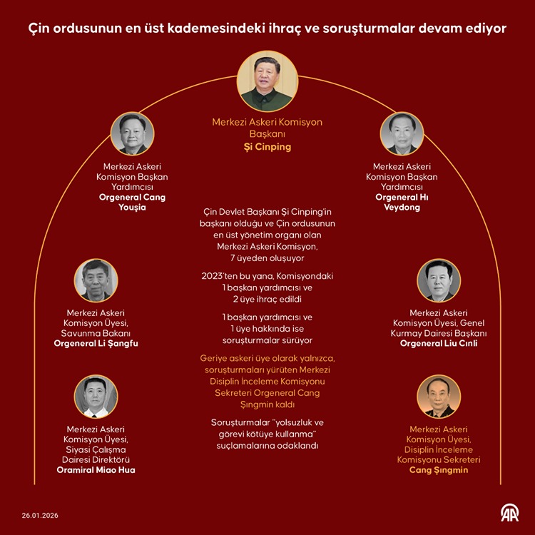 Çin Devlet Başkanı ve ÇKP Genel Sekreteri Şi Cinping'in başkan olarak yer aldığı 7 kişilik Merkezi Askeri Komisyonu'nda 6 asker üyeden 3'ünün yolsuzluk soruşturmaları nedeniyle partiden ve ordudan ihraç edilmesiyle 3 asker üye kalmıştı.