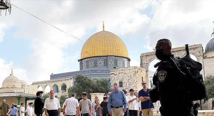 İsrail polisinin eşlik ettiği yüzlerce Yahudi, işgal altındaki Doğu Kudüs’ün Eski Şehir bölgesinde bulunan Mescid-i Aksa’nın avlusuna girdi.