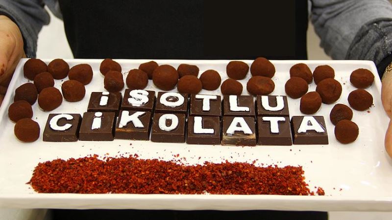 Katıldığı bir kursta çikolata üretimini öğrenerek Mersin'de iş yeri açan Derya Akciğer, müşterilerine farklı tatlar sunma düşüncesiyle isotlu çikolata yaptı.