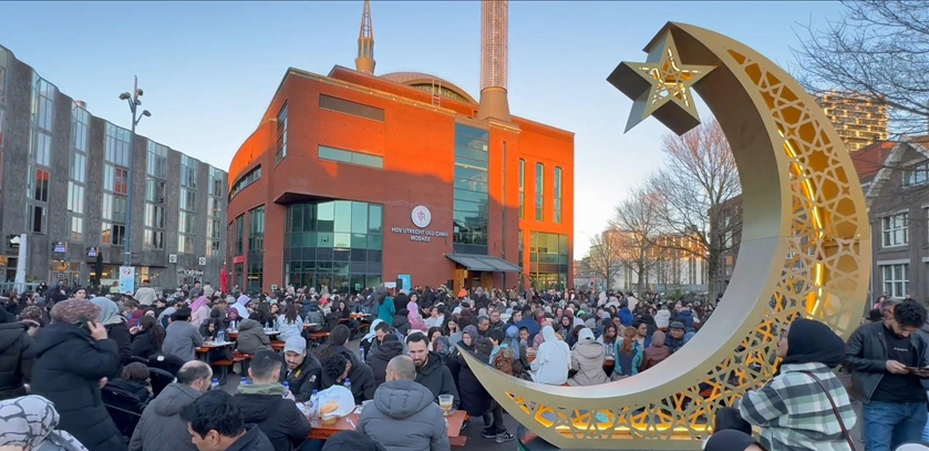 In Amsterdam, communities affiliated with the Palestine Netherlands Solidarity Platform organized a street iftar at Dam Square to protest Israel’s attacks on Gaza, Palestine, and the West Bank.