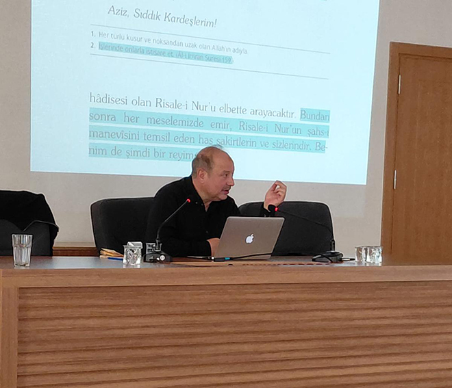 Daha sonra 2. oturumda Prof. Dr. Abdurrahman Kılıç, Üstad Bediüzzaman Hazretlerinin “Ben de sizin ders arkadaşınızım” dediğini aktararak, Risale-i Nur eğitim metodunda bunun kullanılması gerektiğini ifade etti. Böylece öğretmen vasfındaki ya da öğretici konumundaki insanların bir rehber bir yönlendirici, bilgiye ve hedefe ulaşmada bir yol gösterici olması gerektiğini ifade etti.