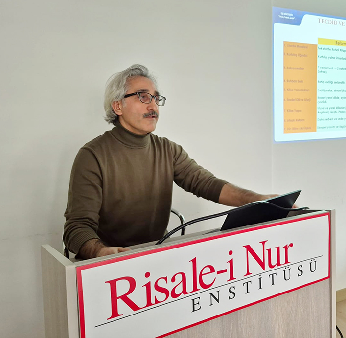 Seminerde, Bediüzzaman Said Nursî’nin tecdid anlayışı üzerinde de duran Akça, Risale-i Nur’un çağın fikrî saldırıları karşısındaki konumunu şu sözlerle anlattı: “Bediüzzaman Said Nursî’nin eserlerinde müceddidlik, özellikle Kur’ân’ın i’cazının müdafaasıyla ilişkilendirilir. 28. Mektup’ta anlatılan Ağrı Dağı metaforu, modern dönemin büyük manevî krizine karşı Kur’ân’ın kendi kendini müdafaa edeceği bir devri haber verir. Risale-i Nur bu bağlamda, imana yönelen fikrî saldırılara karşı çelik bir zırh olarak konumlandırılır.” Akça, bu çerçevede Risale-i Nur’un üç temel vazifesini anlattı.