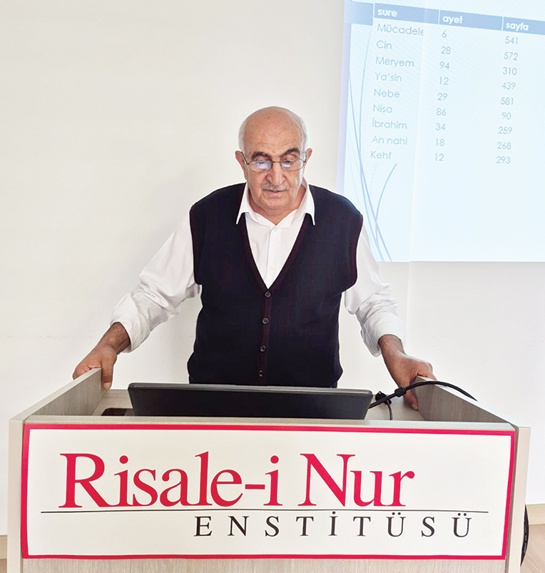 Yeni Asya Vakfı Risale-i Nur Enstitüsü Ankara Şubesinde iki haftada bir icra edilen akademik seminerler kapsamında Enstitünün geçtiğimiz haftaki misafiri Gazi Üniversitesi Fen Fakültesi emekli öğretim üyelerinden İstatistik profesörü Dr. Hasan Bal oldu. Prof. Dr. Hasan Bal, “Kur’ân İstatistikleri” başlıklı konuşmasında Bediüzzaman Said Nursî’nin tesbit ettiği tevafuklu Kur’ân üzerine yaptığı açıklamalara dikkat çekerek bununla ilgili olarak kendisinin de yaptığı istatistik çalışmalarının sonuçlarını tablolarla anlattı.