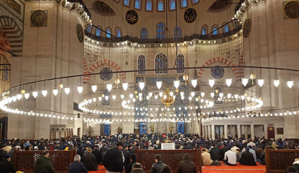 İstanbul'daki 'Selatin camileri'nde (Selatin camileri: Osmanlı Devleti döneminde Padişahların yaptırdıkları camilere verilen ad) bayram namazı kılmayalı epey olmuştu. Bu defaki Ramazan Bayram namazını Süleymaniye Camiinde kılmaya niyetlendik ve sabah namazını evde erkenden kılarak yola çıktık. Camiye gittiğimizde sabah namazı kılınmış ve aşr-ı şerif okunuyordu. Caminin çevresi arabalarla dolmuş ve cemaat de kafile kafile camiye doluşuyordu. Namaz vaktine kadar caminin çevresinde bir tur attık ve çevredeki kabristanlarda yatanlara fatihalar gönderdik. Caminin içine girdiğimizde cami henüz dolmamıştı. "Acaba dolar mı?" diye düşünürken bayram namazı vakti yaklaştıkça caminin tamamen dolduğunu gördük. Hanım da üst katta ve arkada kendilerine ayrılar yerleri doldurmuştu. Daha sonra öğrendiğimize göre, bazıları caminin içine girememiş, avluda namaz kılmak mecburiyetinde kalmışlar.