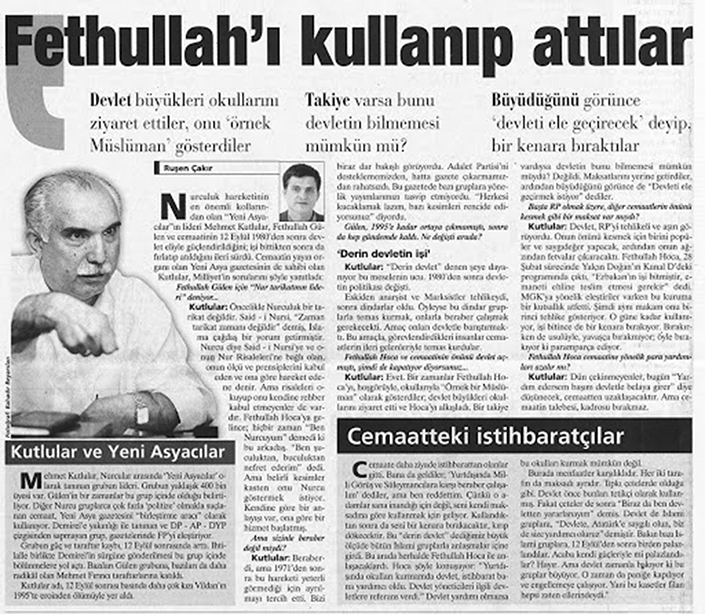 Bu reddedişin ardından aynı odakların rotayı Fethullah Gülen grubuna kırdığını ve o yapının bu destekle "palazlandırıldığını" ifade ederek, Yeni Asya ekolünün bağımsız ve sivil kalma iradesini tescilledi.