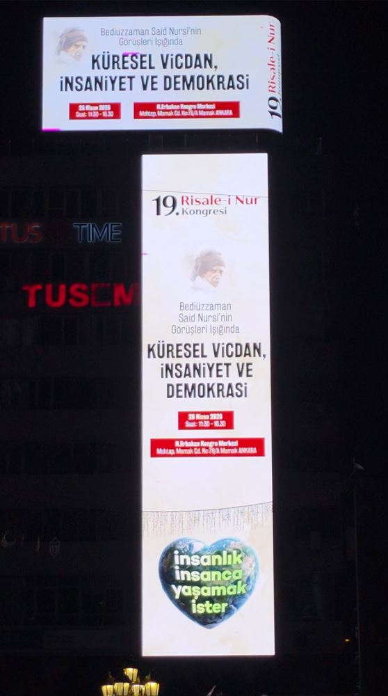 Ankara’nın kalbi olarak bilinen Kızılay Meydanı’nda, 19. Risale-i Nur Kongresi’nin tanıtım reklamları yayınlanmaya başladı.
