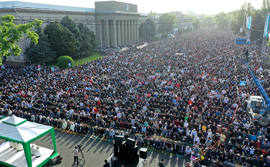 Kırgızistan'da binlerce Müslüman, Ramazan Bayramı namazını camilerde ve büyük şehirlerin ana meydanlarında eda etti.