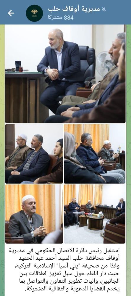 Ahmet Abdulhamit Bey, Halep Vakıflar Müdürlü İletişim Dairesinin faaliyetleri konusunda bizi bilgilendirdi. Biz de onu Türkiye’de Yeni Asya gazetesinin medyada muteber bir konuma sahip olduğunu, İslâmî, nezihve mutedil bir dil ve üslup ile toplumu dinî, siyasî ve sosyal alanda doğru bilgilerle aydınlattığını beyan ettik. Ayrıca Türkiye’de Bediüzzaman ve Risale-i Nur hakkında kendisine özet bir bilgi verdik. Arapça Risaleleri teslim ettik.