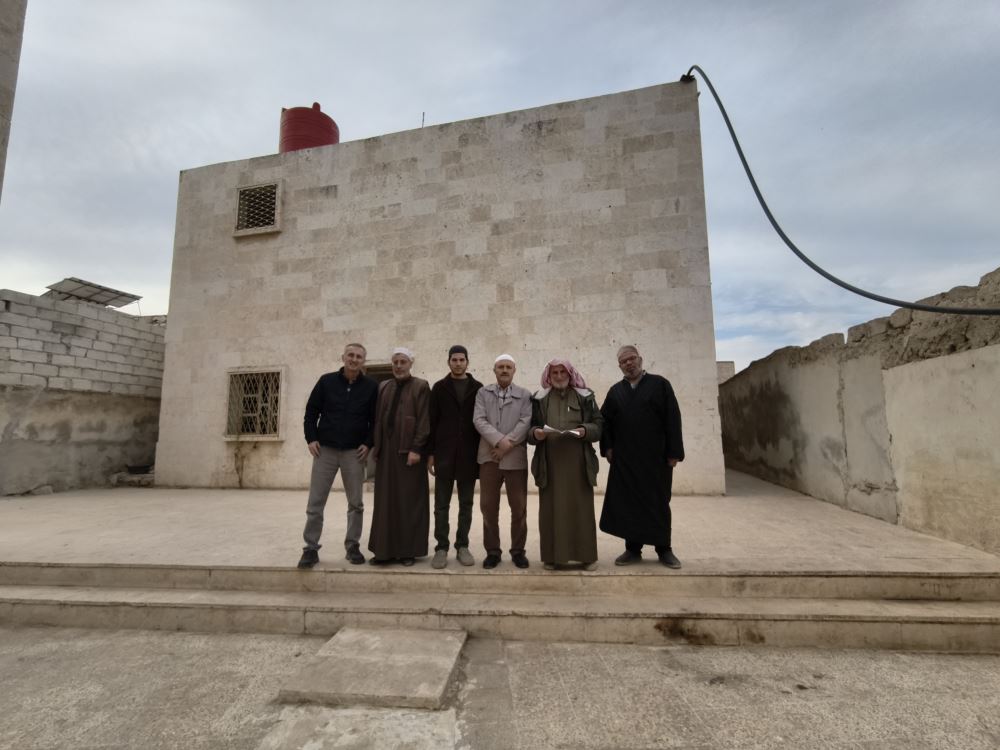 Yemek ve namaz molasından sonra incelemelerde bulunmak üzere evlerine 40, 50 metre mesafede bulunan Hüseyin bin Ali Camii’nin yanı başında bulunan sebeb-i ziyaretimiz olan okul binasına beraberce intikal ettik. Camii’nin avlusundan geçilerek girilen binada incelemelerde bulunduk. Bina ve cami bölgede çok yaygın olan taş malzeme kullanılarak yapılmış sağlam bir yapıya sahip. Fakat savaş döneminde metruk kalmış ve yıpranmış.