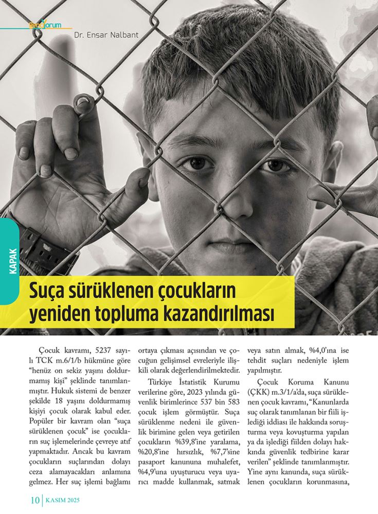 • ‘Suça sürüklenen çocukların tekrar topluma kazandırılması’ yazısı ise Dr. Ensar Nalbant’tan.