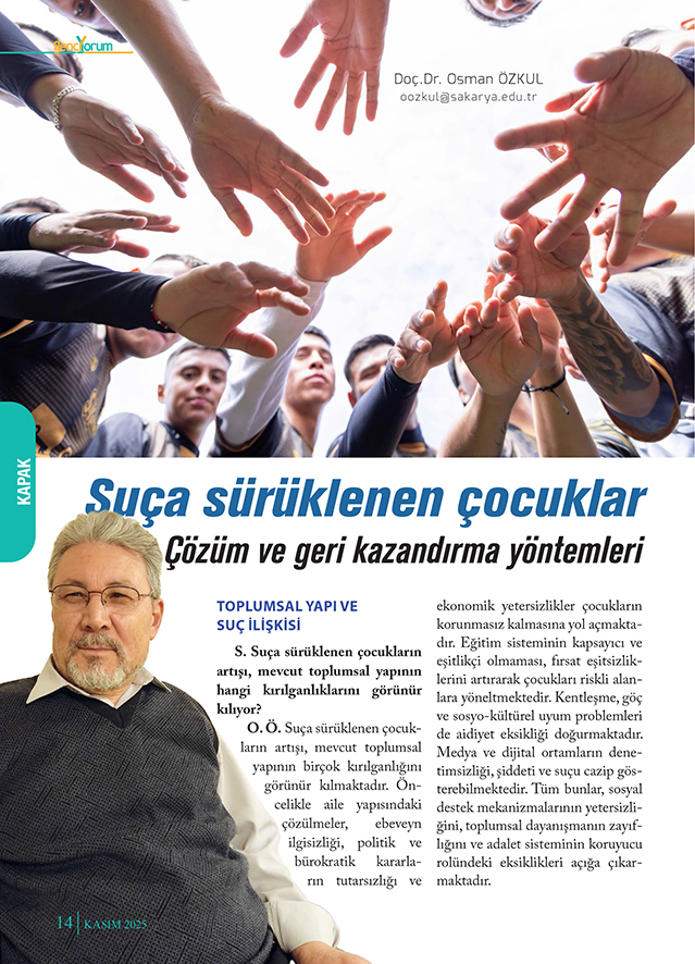 • Abdülkadir Sinoğlu ise ‘Çocuklar suça sürüklenir mi?’ başlıklı yazısında; kişisel irade dışındaki çevresel ve toplumsal uyaranların, suç işlemedeki rolüne değiniyor.