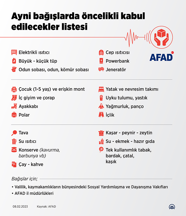 Vatandaşlar bebek bezi, battaniye, elektrikli ısıtıcı, temizlik ürünleri, kuru gıda ve birçok malzemeyi yardım noktalarına ulaştırdı.