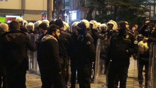 Salona girmekte ısrar eden gruba polis, biber gazı ile müdahalede bulundu. Polisler, olay sırasında gözaltına aldığı 4 eylemciyi daha sonra serbest bıraktı.