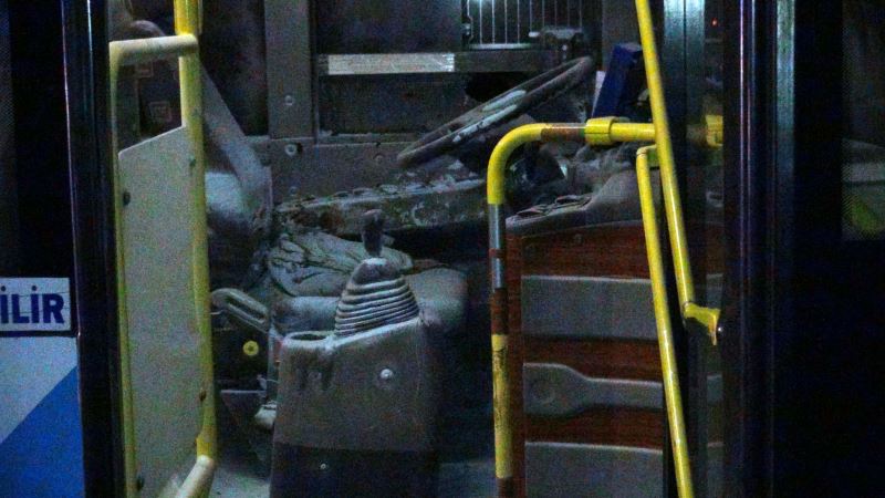 Şanlıurfa'da yüzlerini maskeyle gizleyen kimliği belirsiz kişiler, belediye ait halk otobüsüne molotof kokteyli attı.