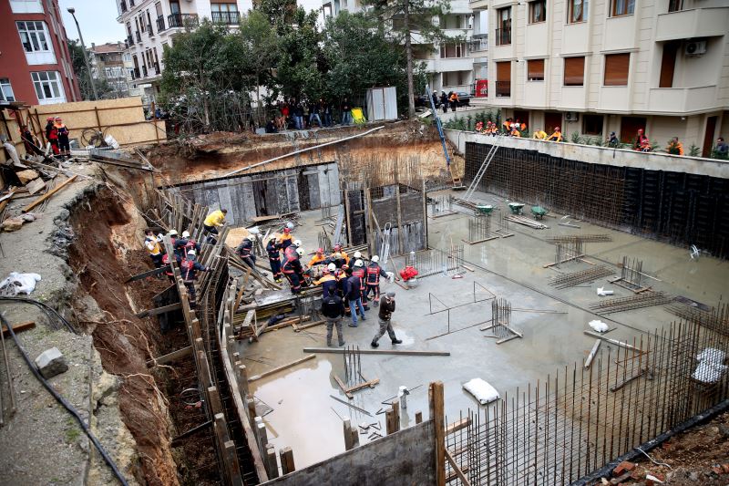 Bakırköy Yeşilköy'de bir inşaatın temelinde 2 işçi istinat duvarı çalışması yaparken saat 09.30 sıralarında toprak kayması meydana geldi.