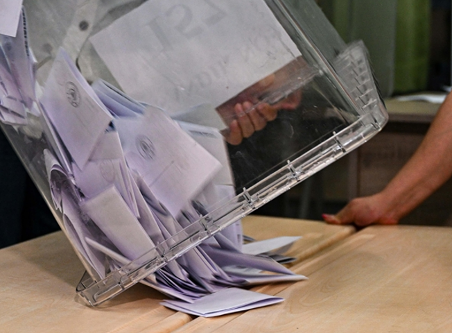Sandık görevlilerinden pusulasını alan seçmenler, 8 adayın isimlerinin yer aldığı bölümün altındaki boş kutulardan birine "evet" mührünü vurarak oy verme işlemini yerine getirdi.