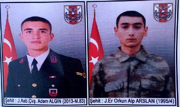 Cevizlik Köyü'nde bulunan Jandarma Karakolu'na PKK'lı teröristlerin 5 ton patlayıcı yüklü kamyonla gerçekleştirdiği bombalı saldırıda şehit olan Astsubay Üstçavuş Adem Algın ile jandarma er Orkun Alp Aslan için Mardin 70'inci Mekanize Piyade Tugay Komutanlığı'na bağlı Selen Kışlası'ndan memlektlerine uğurlandı.