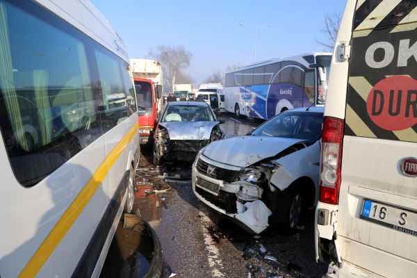 Mudanya Yolu Bademli Kavaşğı yakınlarında Bursa'ya geliş istikametinde meydana gelen kazada onlarca araç birbirine girdi.