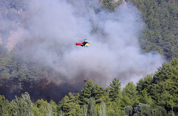 Gece boyu kara ekiplerince devam eden söndürme çalışmalarına günün ilk ışıklarıyla havadan uçak ve helikopterler de destek vermeye başladı.