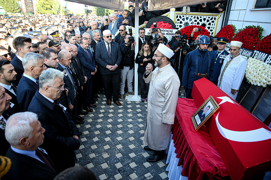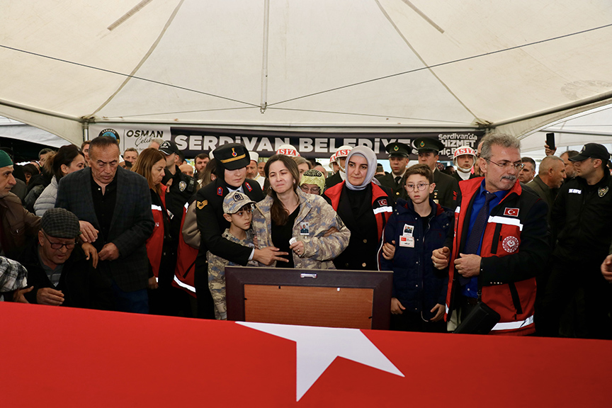 Mercan'ın babası Halil İbrahim, annesi Ayşe, kız kardeşleri Ayfer, Cennet ve Ruhan, şehidin eşi Esra Mercan ile yakınları, cenaze namazı öncesi tabutun başına geldi.