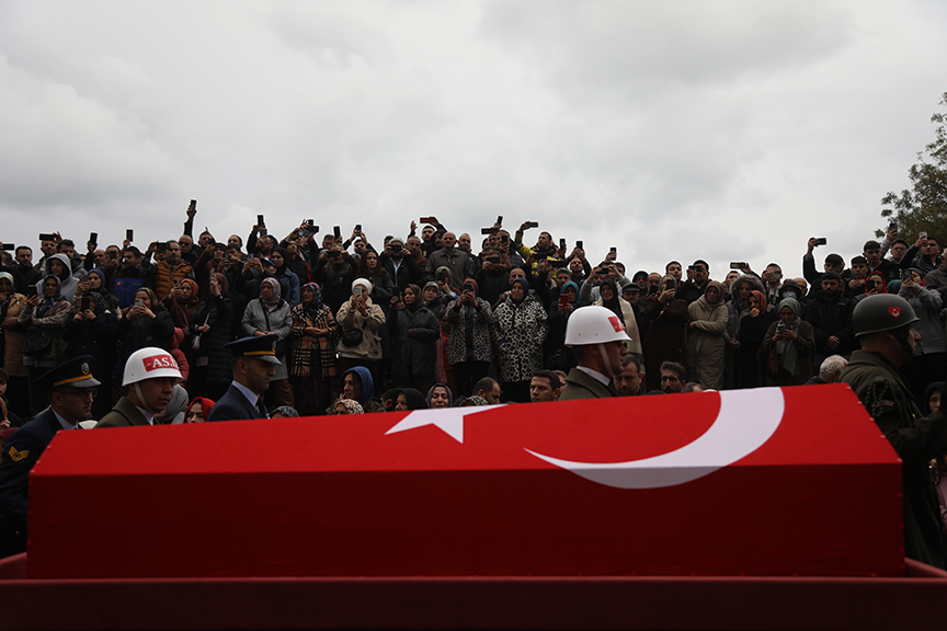 Şehit Hava Pilot Üsteğmen Cüneyt Kandemir, Hava Uçak Bakım Astsubay Kıdemli Başçavuş Ümit İnce ve Hava Ulaştırma Uzman Çavuş Cem Dolapci için Ahmet Hamdi Akseki Camisi'nde cenaze töreni düzenlendi.