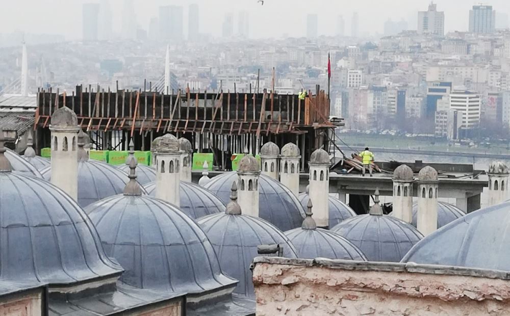 İstanbul, Fatih, Demirtaş Mahallesi’nde bulunan ve Mimar Sinan’ın ‘kalfalık eseri’ olarak tanımladığı tarihi Süleymaniye Camii’nin önünde yükselen inşaatın son katındaki kalıplar söküldü.
