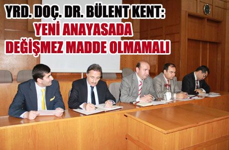Yıldırım Beyazıt Üniversitesi (YBÜ) Hukuk Fakültesi Öğretim Üyesi Yrd. Doç. Dr. Bülent Kent, yeni anayasada ‘’değiştirilemez’’ hükümlere yer verilmemesi ya da Almanya’da olduğu gibi hem temel hak ve özgürlüklerin korunduğu hem de devletin niteliklerinin yer aldığı maddeler şeklinde düzenlenmesi gerektiğini belirtti.