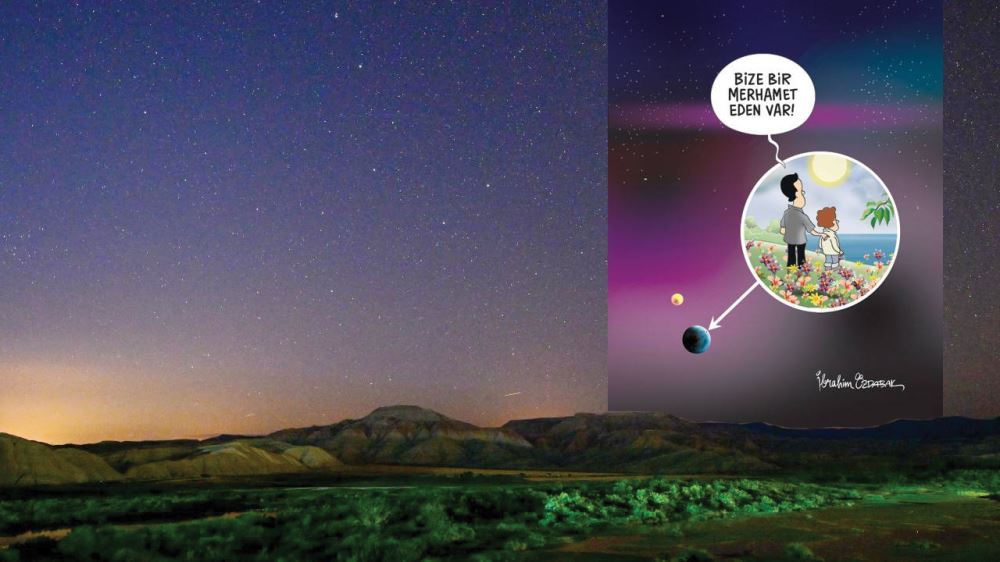 Şu muazzam büyüklükteki dünyamız, yanında ufacık kaldığı diğer gezegenlerle birlikte güneş sistemimizin küçük bir parçasıdır. O güneş sistemi ise milyarlarca yıldızdan sadece biri olarak galaksinin içinde döner. Galaksiler birleşir, kümeler oluşur ve aklımızın alamadığı devasa bir evren karşımıza çıkar. Hem de her geçen an daha da genişleyerek büyüyen bir evren… Bir insan 80 yıl boyunca ışık hızında yolculuk etse evrenin yüzde birini bile göremiyor. Bizim bakış açımızla böylesine akıl almaz bir büyüklüğe sahip olan âlemimiz, belki de başka bir bakış açısına göre sadece bir damla kadardır. Zira Azrail (as), koskoca dünyamızı belki bir sarayın odaları gibi belki de çok daha kolayca dolaşır.
