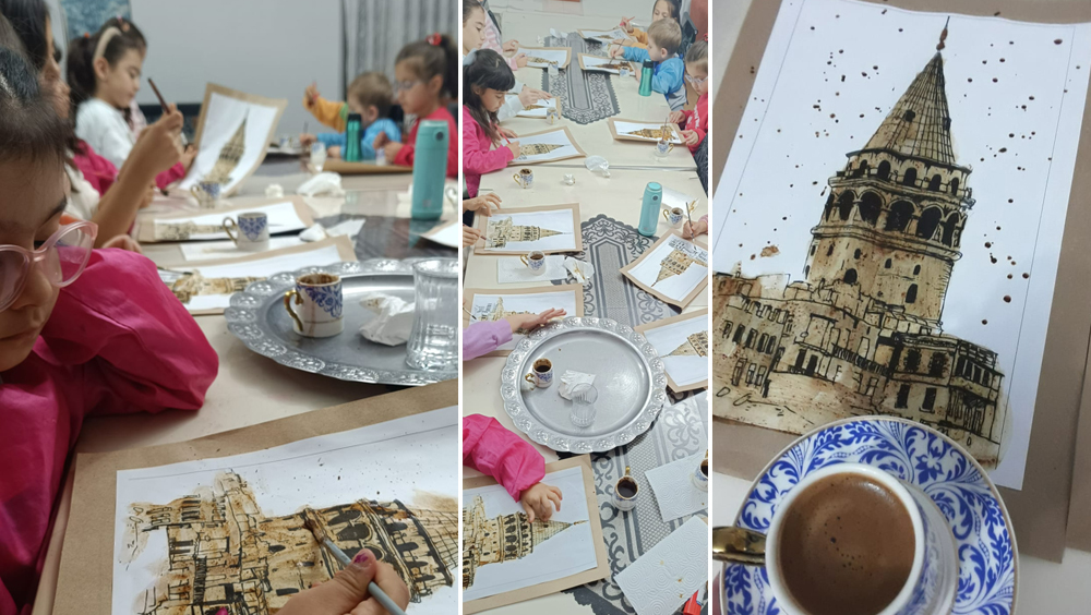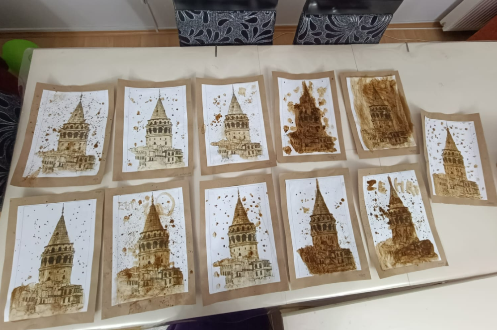 Sevdiğiniz bir resmin kara kalemle çizilmiş hâlinin çıktısını alabilirsiniz. Biz Galata Kulesi çıktısı aldık ve arkadaşlarımızla boyadık. Çok eğlendik. Faaliyetimizi beğendiyseniz siz de deneyebilirsiniz. Hoşça kalın.